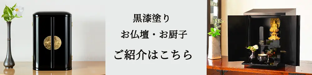 熟練の工芸士の手によって厳選した無垢材で形作られた木地の上に、本漆塗り・本金箔がほどこされ、小型ながらも上質な存在感と厳かさがございます。手前にお仏具を飾ることで、正式なお仏壇としてもお持ちいただいております。